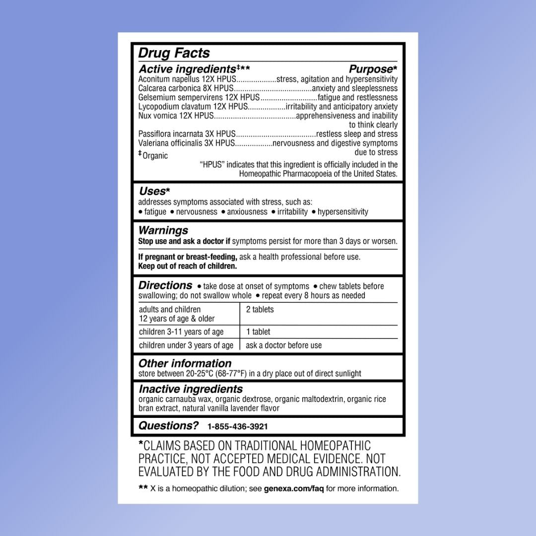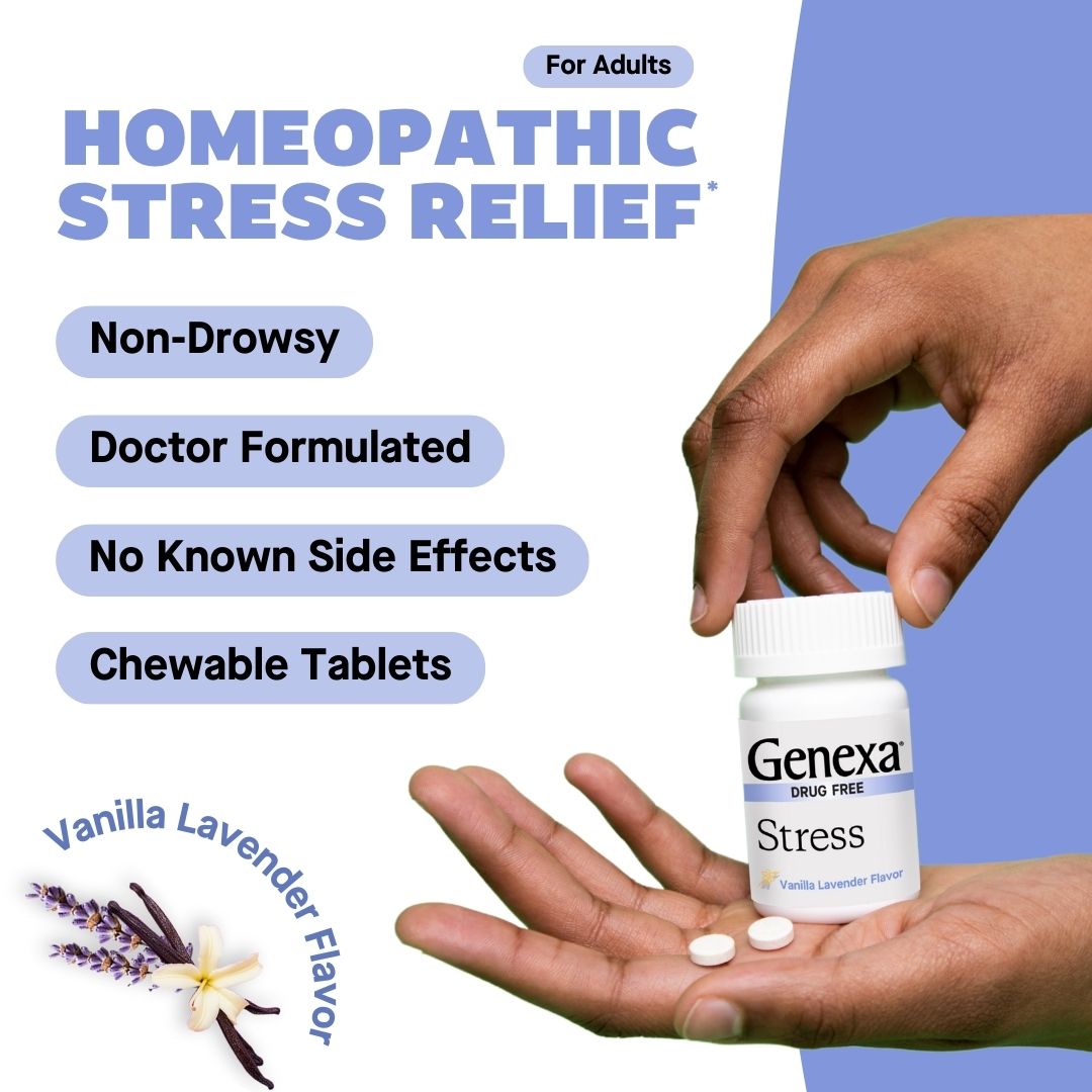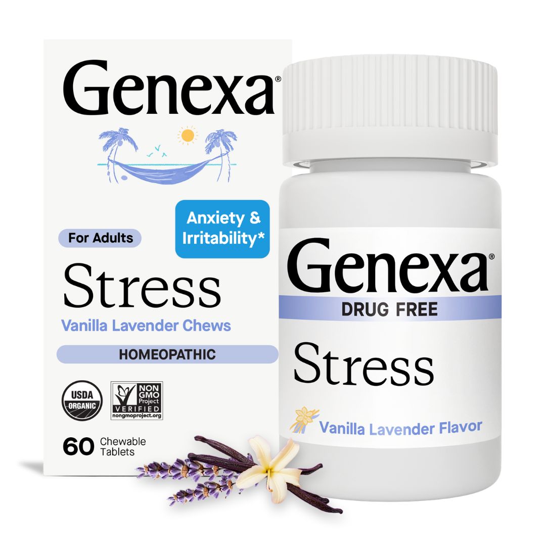 Genexa Stress is a real remedy, made clean. This homeopathic remedy addresses symptoms associated with stress such as fatigue, nervousness, irritability, and hypersensitivity*.